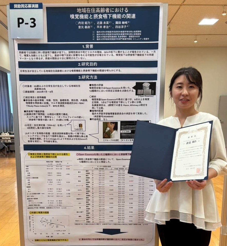受賞演題は「地域在住高齢者における嗅覚機能と摂食嚥下機能の関連」です。