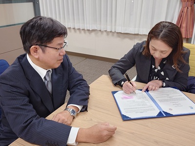 アイルランガ大学看護学部長Prof. Dr. Yuni Sufyanti Ariefにより協定書への署名が行われました。署名式には、福井大学を代表して医学科の定教授が出席しました。